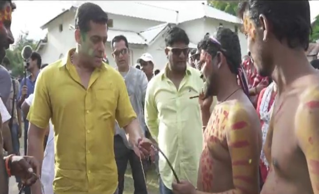 ليقرر سلمان خان أن يأخذ أحد السياط وضرب نفسه بواسطته ليظهر تفاعله مع أولئك الأشخاص قائلا : ” أشعر معكم وأشاطركم الألم ” .