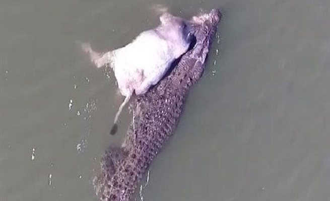وقال ملتقط الصور ويدعى ميك استنس، وفق ما اوردت شبكة “إرم نيوز”، إنه شاهد ومن معه في الطائرة التمساح بوضوح وهو يسحب البقرة، لافتًا إلى أن التمساح ”كان جائعًا جدًا، كما أنه بدا سعيدًا للغاية بصيده الثمين“.