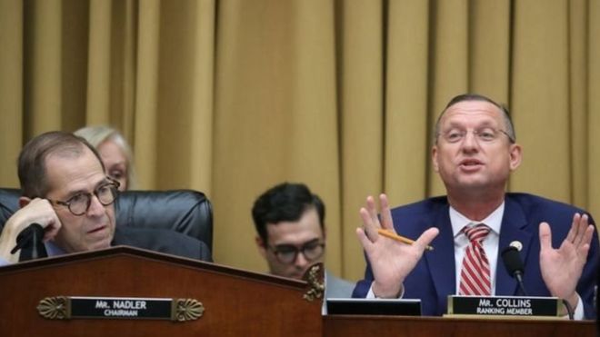 اللجنة القضائية في مجلس النواب بالكونغرس صوتت بغالبية 24 عضوا مقابل 17 بتمرير قانون إجرائي يتيح لها بدء تحقيق في مخالفات محتملة من جانب الرئيس بما في ذلك تعيين محامين لاستجواب الشهود علنا بخصوص أي مخالفات يتهم بها ترامب.