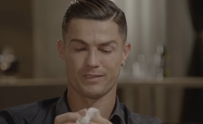 وعَرض مورغان، أثناء المُقابلة، فيديو لوالد رونالدو الرّاحل “خوسيه دينيس أفيرو”، لم يكن رونالدو قد رآهُ من قَبل، ومِن شدّة تأثّره باللقطات التي رآها والكلمات التي سمعها من والده، انهمرت دموعه وعلّق قائلًا: “لَم أرَ هذا الفيديو في حياتي. لا يُصدّق”.