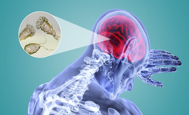 يذكر أن تلك الأميبيا تدخل عن طريق فتحة الأنف وتصل إلى الدماغ، ما يؤدي إلى صداع قوي وارتفاع كبير في حرارة الجسم، فضلا عن تشنج في الرقبة وحالات تقيؤ، ثم إلى دوار وسبات وضياع وهلوسة.