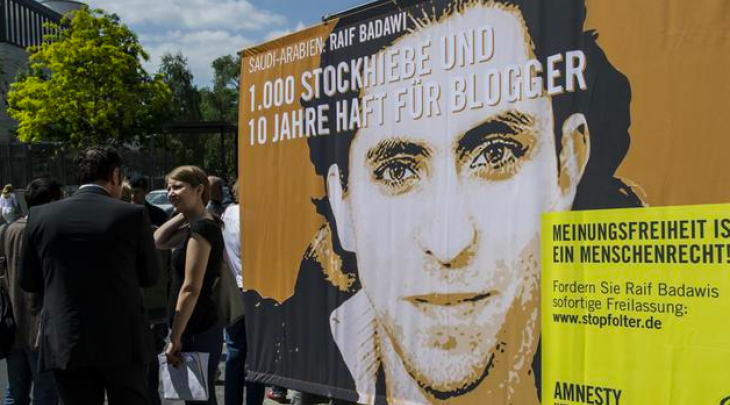 زوجة المدون السعودي رائف بدوي تعلن عن إضرابه عن الطعام بسبب سوء معاملته في السجن