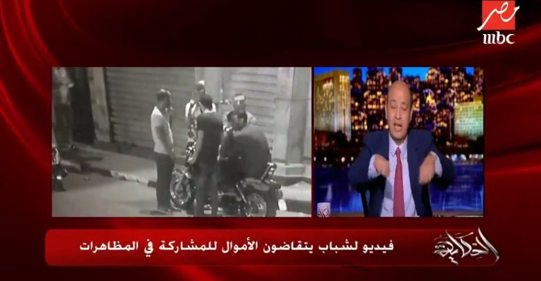 نشر الإعلامي المصري، عمرو أديب، السبت، مقطع فيديو قال إنه يظهر تلقي أشخاص لأموال مقابل الخروج في مظاهرات بمصر، وذلك بعد المسيرات الاحتجاجية الأخيرة التي خرج فيها المئات في بعد المناطق بمصر ضد الرئيس، عبدالفتاح السيسي.