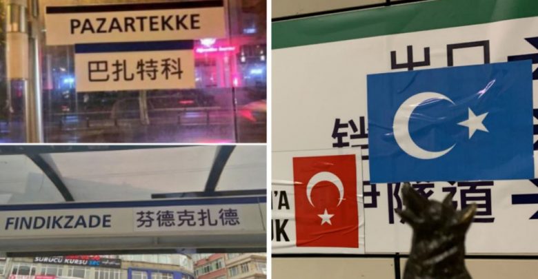 أثارت لافتات كتب عليها باللغة الصينية علقت بجانب أخرى باللغة التركية في محطات الترام والمترو في مدينة إسطنبول التركية، ردود فعل من مغردين.
