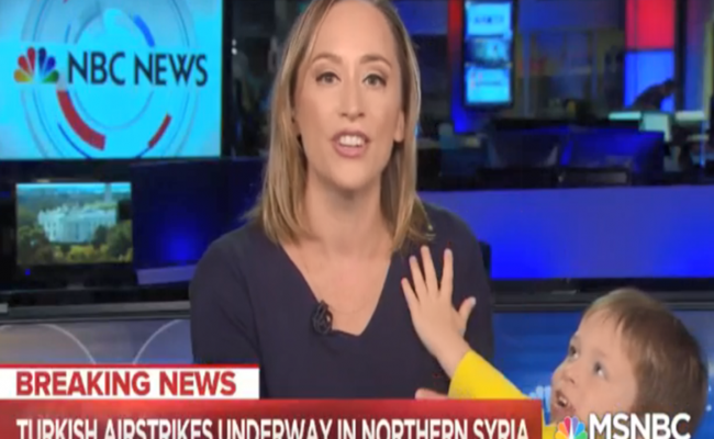تفاجأت مذيعة قناة “إن بي سي” الأمريكية، كورتني كوبي بدخول طفلها قاعة البث المباشر بينما كانت تقدم الأخبار على الهواء.