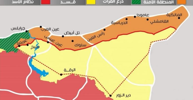 ومضى قائلًا: “لذلك فإننا الآن نعلن إنشاء منطقة آمنة على مسافة 444 كيلومترًا من الغرب إلى الشرق و32 كلم من الشمال إلى الجنوب، سيأتي إليها اللاجئون الذين في بلدنا”.