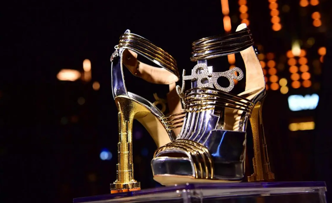 يتميّز هذا الحذاء بكعبه المصنوع من الذهب، وهو مرصّع بثلاثين قيراطاً من الماس ويحتوي على قطعة صغيرة من حجر نيزكي أثريّ تمّ اكتشافه في الأرجنتين خلال العام 1576. وليست هذه المرة الأولى التي يقدّم فيها المصمم أنطونيو فياتري حذاءً يكسر رقماً قياسياً، إذ سبق أن قدّم في دبي أيضاً خلال العام 2017 حذاء “ستيليتو” أدخل في تصميه أكثر من 700 غرام من الذهب عيار 24 قيراط. وقد قُدّر سعره بأكثر من 120000 درهماً إماراتياً. وقد قال عنه المصمم حينها: “كل شيء ممكن …فكلمة مستحيل غير موجودة في قاموسي”.