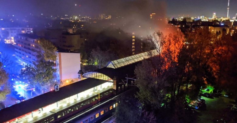 شب حريق، مساء السبت، في قطار خاص يحمل مئات من مشجعي الكرة بمحطة بيليفو بالعاصمة الألمانية برلين.