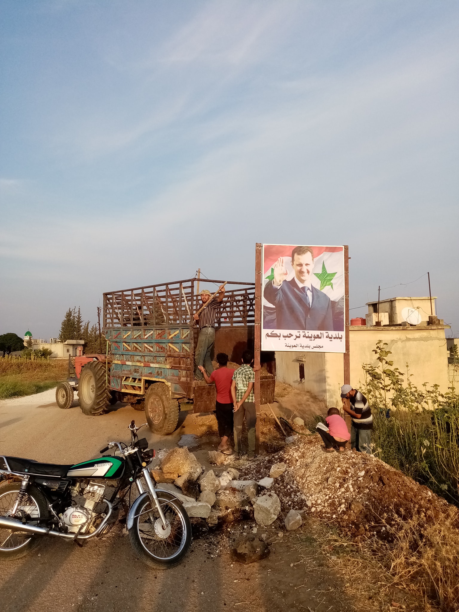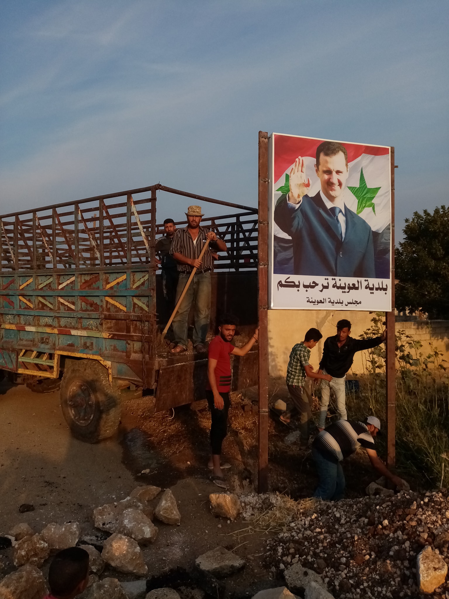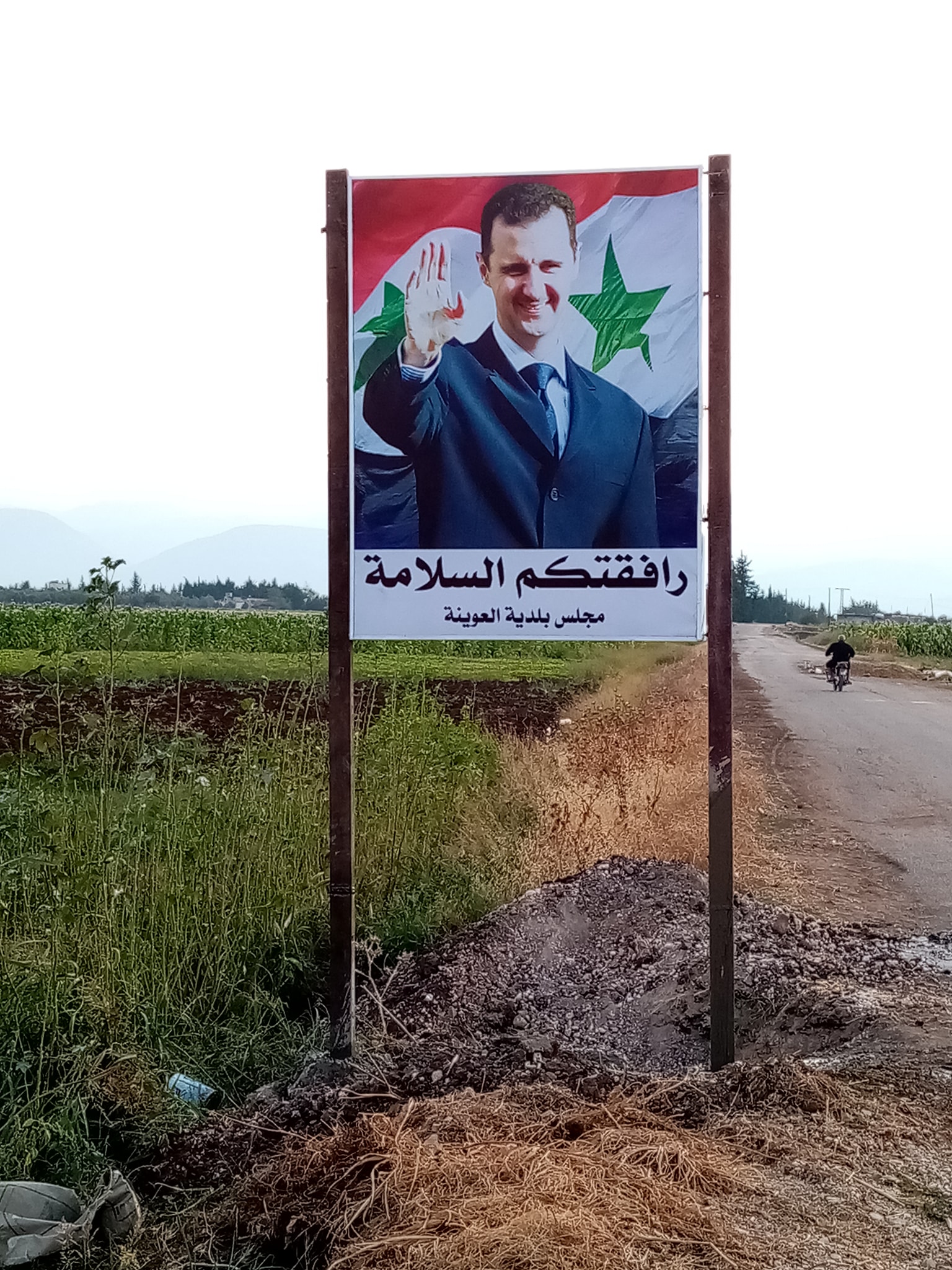 وذكرت صفحة محلية تغطي أخبار بلدة العوينة بريف حماة (بالقرب من السقيلبية)، الجمعة، أنه “بهمة رئيس مجلس بلدية العوينة الأستاذ محمدالحميدي تم تركيب لوحة ضوئية لقائد الوطن في مدخل العوينة.. كل الشكر للأستاذ محمد على اهتمامه الكبير بجعل قرية العوينة في أحسن منظر”.