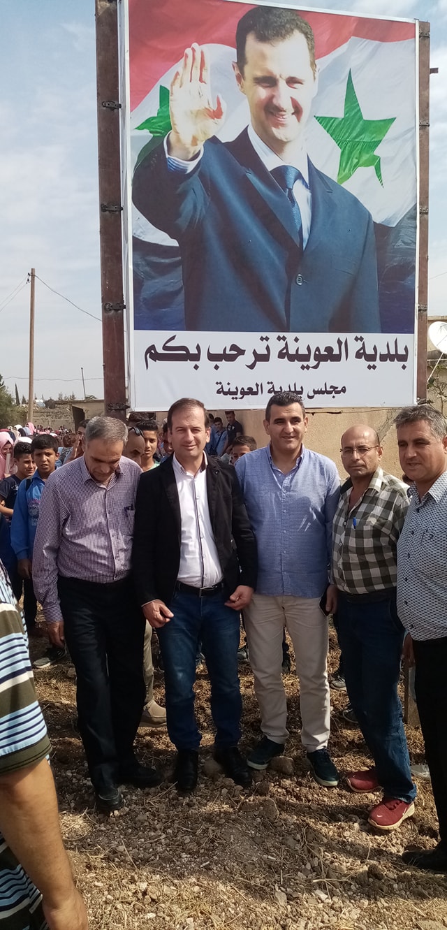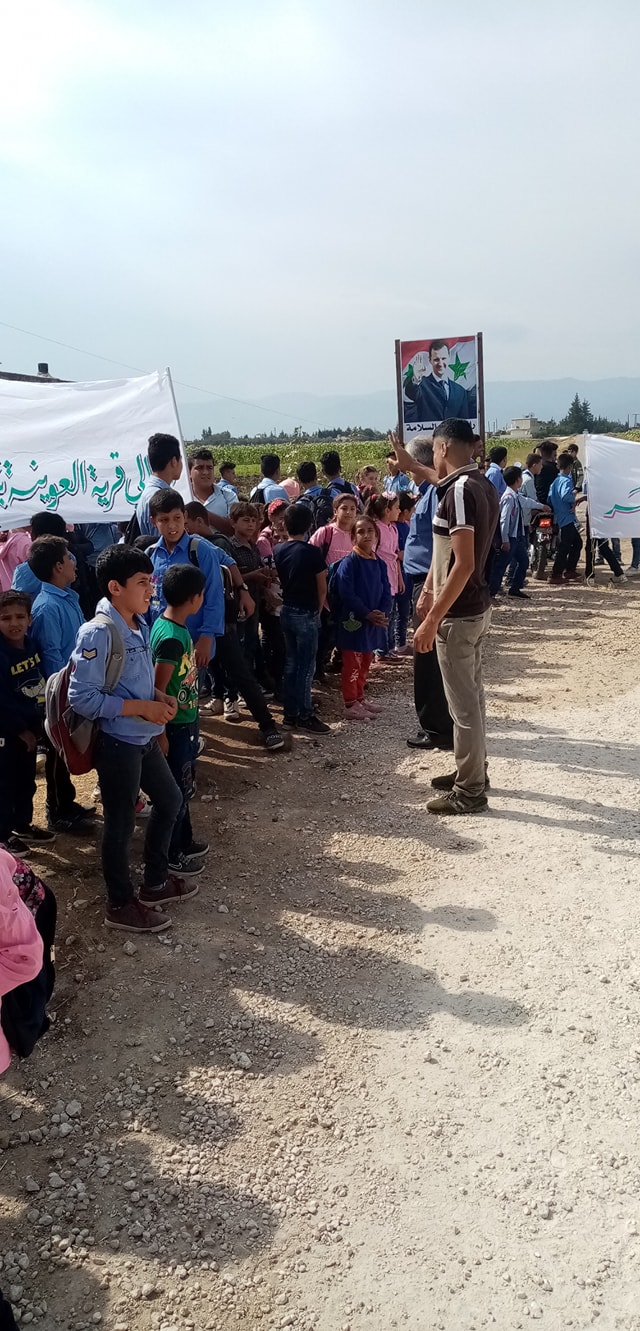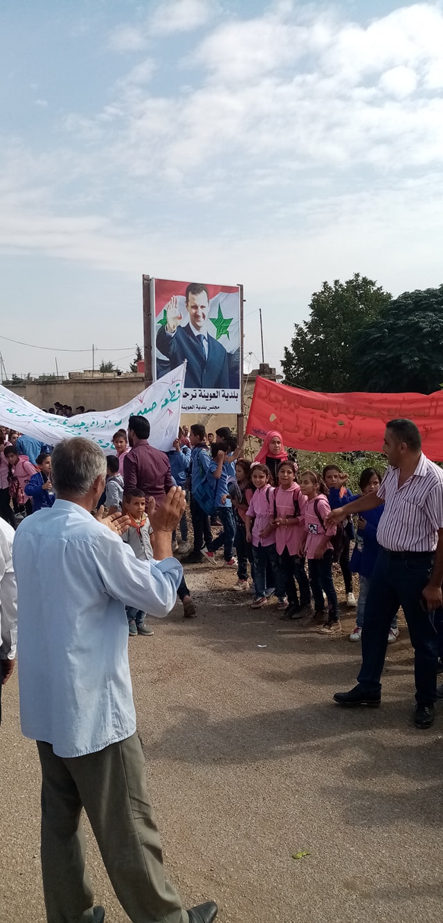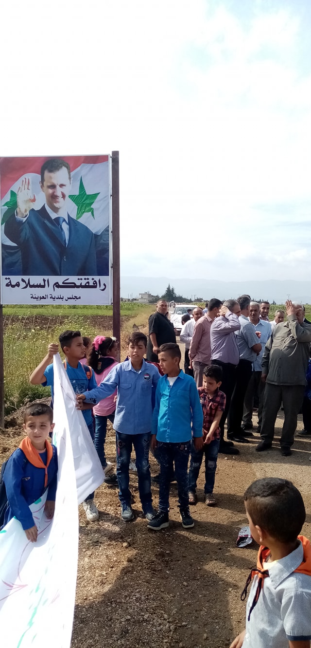 ويوم الأحد، ذكر المصدر ذاته أن “الفعاليات الشعبية والرسمية في العوينة وبحضور الرفيق شريف حمودي أمين شعبة الحزب بالغاب والرفاق سمير نعمة وياغي علي أعضاء قيادة الشعبة والرفاق موجهين المجمع الإداري بالسقيلبية، نظمت احتفالية جماهيرية بمناسبة رفع صورة قائد الوطن في مدخل قرية العوينة”.