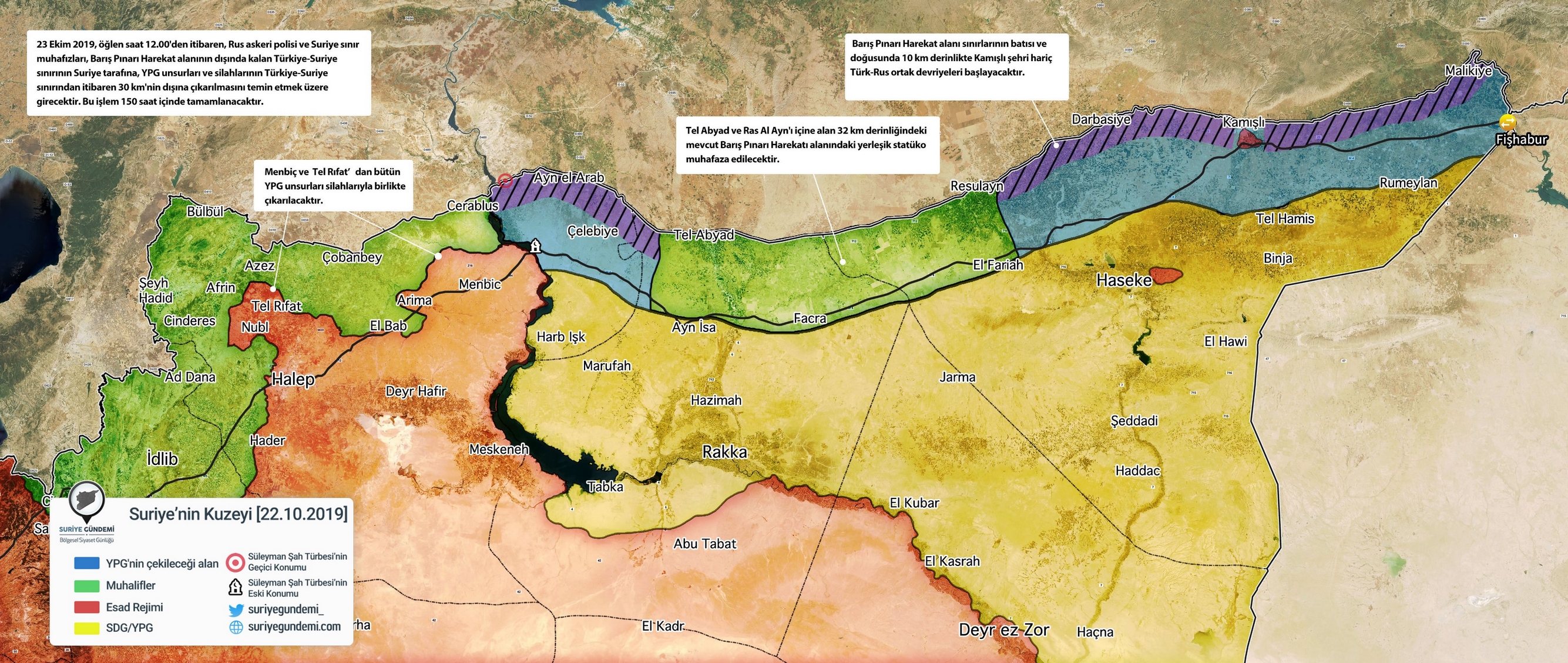 نشر موقع تركي مختص خريطة لشمال سوريا، ترجم من خلالها بنود الإعلان الصادر عن الرئيسين الروسي فلاديمير وبوتين والتركي رجب طيب أردوغان في ختام قمتهما التاريخية الأخيرة في سوتشي.