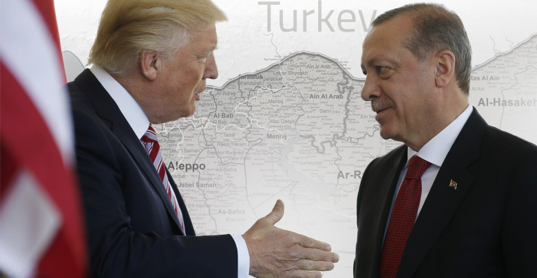 وأشارت الصحيفة إلى أن الهدف الأميركي الوحيد المقدم هنا هو تسهيل رغبة ترامب في شد الرحال والمغادرة، كما وصفها أمس في تصريحات بالبيت الأبيض: “دعوا شخصا آخر يقاتل من أجل الرمال الملطخة بالدماء”. رغم أن القوات الخاصة الأميركية لم تتكبد خسائر تذكر في المنطقة الحدودية. ولفتت إلى أن ترامب يواصل ما سمته “التساهل المحير” مع أردوغان من خلال رفع العقوبات التي فرضها مؤخرا.