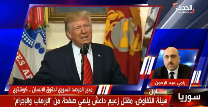 رامي عبد الرحمن : على ترامب الذي خذل قسد الاعتراف بفضلها بعملية البغدادي .. و هناك معلومات لم يرغب بكشفها للجمهور الأمريكي ( فيديو )