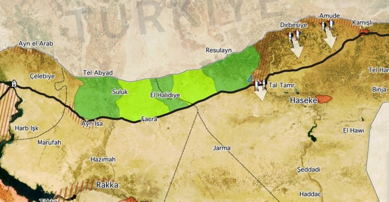 وذكر المرصد أن “قوات النظام انسحبت من كامل ريف الدرباسية الغربي، والفصائل الموالية واصلت هجومها العنيف على منطقة أبو رأسين في محاولة لقطع الطريق بينها وبين تل تمر بإسناد بري تركي مكثف”.