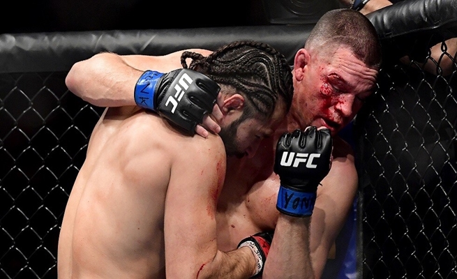 يذكر أن الطاقم الطبي منع نات دياز من خوض الجولة الرابعة من النزال بسبب إصابته بقطع كبير في الحاجب الأيمن، ليخسر بالضربة الفنية القاضية، وذلك بعد أن تفوق خورخي ماسفيدال على دياز الملقب بـ “الكنغر” والمشاكس بتصرفاته، على مدار الجولات الثلاث الأولى. (RT)