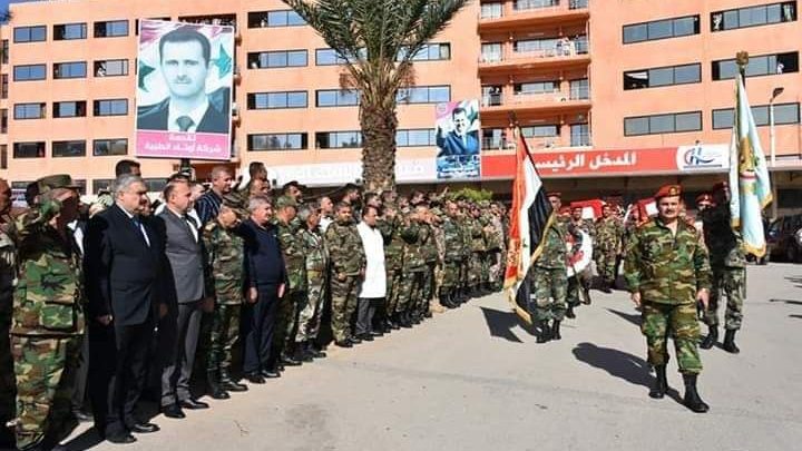 وذكرت وسائل إعلام موالية أنه “تم من مستشفى حماة الوطني تشييع الشهداء الطيار المقدم شرف لؤي عباس والطيار الرائد شرف ياسر رعد والملازم شرف جلال العتر والملازم شرف عبدو النبع إلى مثواهم الأخير”.