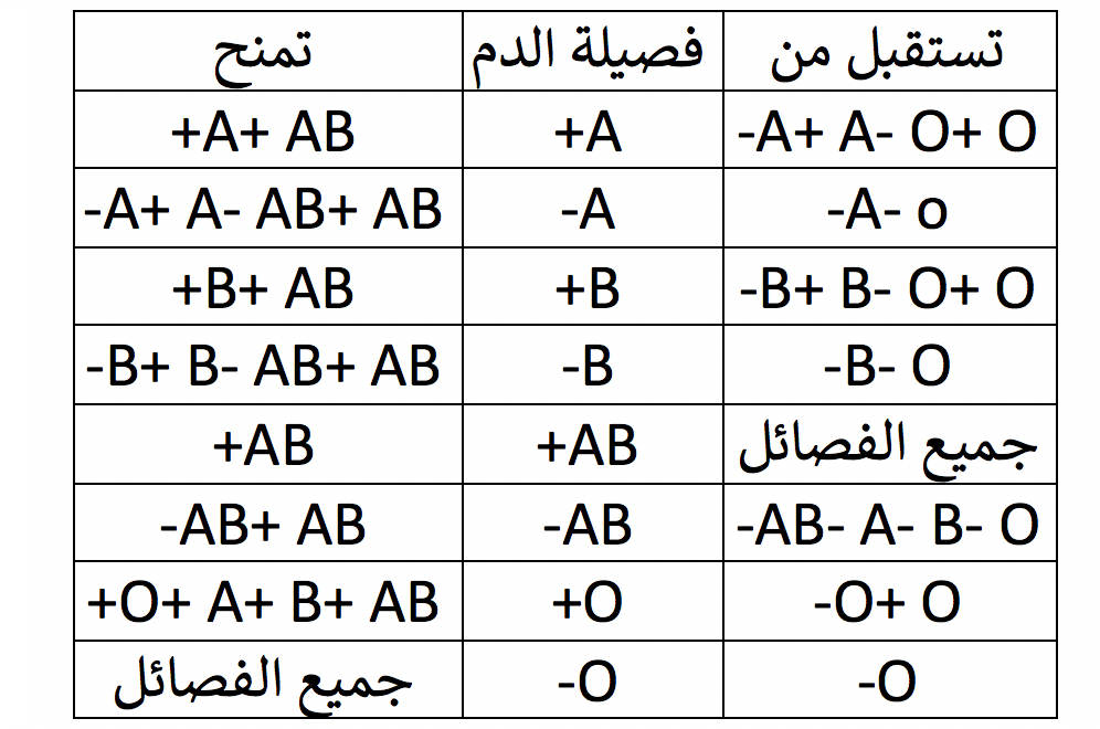 ونوضح هنا الفصائل المانحة والمستقبلة بالتفصيل: