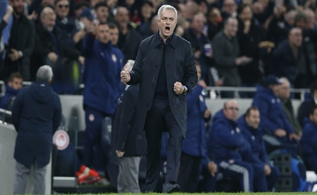 سارع البرتغالي #جوزيه_مورينيو ، بعد تسجيل فريقه توتنهام لهدف في شباك ضيفه أولمبياكوس، الثلاثاء، إلى أحد جامعي الكرات لشكره على مساهمته الكبيرة في الهدف.