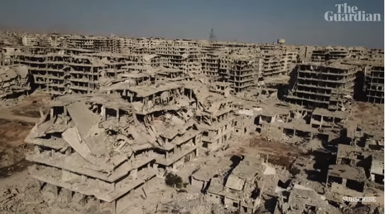 صحيفة بريطانية تنشر لقطات جوية تظهر جانباً من الدمار الذي لحق بحلب و دمشق و دير الزور ( فيديو )