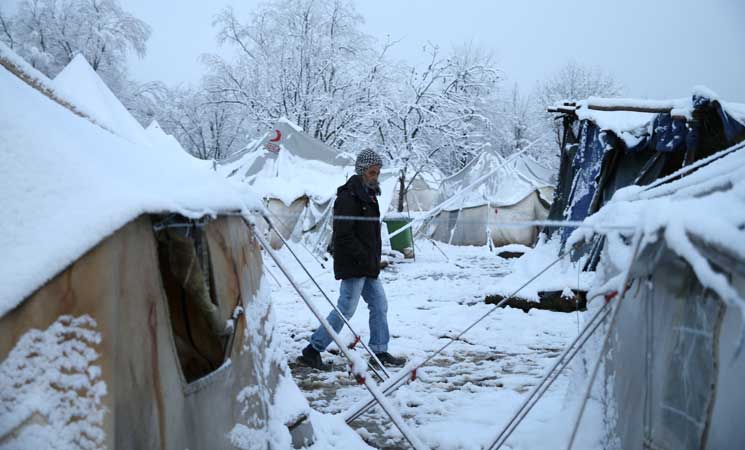 يكافح مئات المهاجرين واللاجئين العالقين في مخيم مؤقت في غابة في البوسنة من أجل البقاء في ظل درجات حرارة تقل عن الصفر حيث تتساقط الثلوج على خيامهم، مما يثير مخاوف من موت البعض ما لم يعاد توطينهم بشكل عاجل.