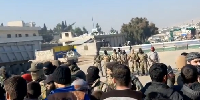في ظل استمرار القصف و التهجير .. مدنيون منكوبون يتظاهرون بالقرب من معبر باب الهوى و جبهة النصرة تصدهم ( فيديو )