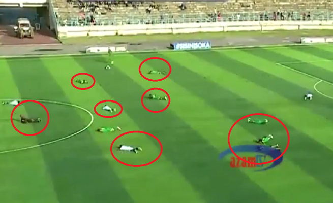 ولم يقتصر الانبطاح الاحترازي على اللاعبين بل شمل الجهازين الفنيين واللاعبين الاحتياطيين والجمهور على حد سواء.