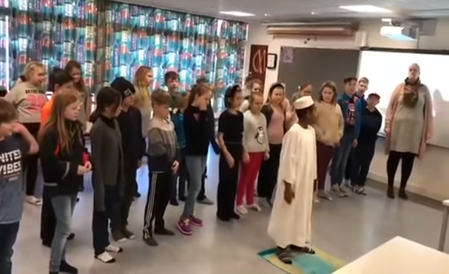 قررت مدرسة سويدية تعريف طلاب الصف الخامس بأصول العبادة الإسلامية من خلال قراءة الأستاذ لآية قرآنية وجعل الطلاب يقيمون الصلاة على سجادة في إعداد غريب أُطلق عليه “لعب الأدوار”.