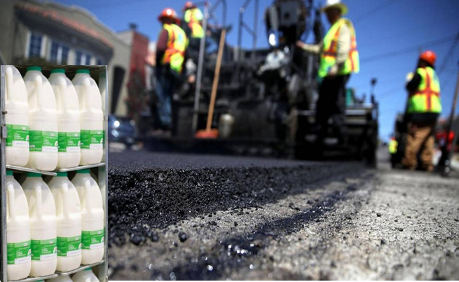 وزجاجات الحليب من اللون الأبيض، فكيف تصبح سوداء لتلائم لون الإسفلت المعهود؟