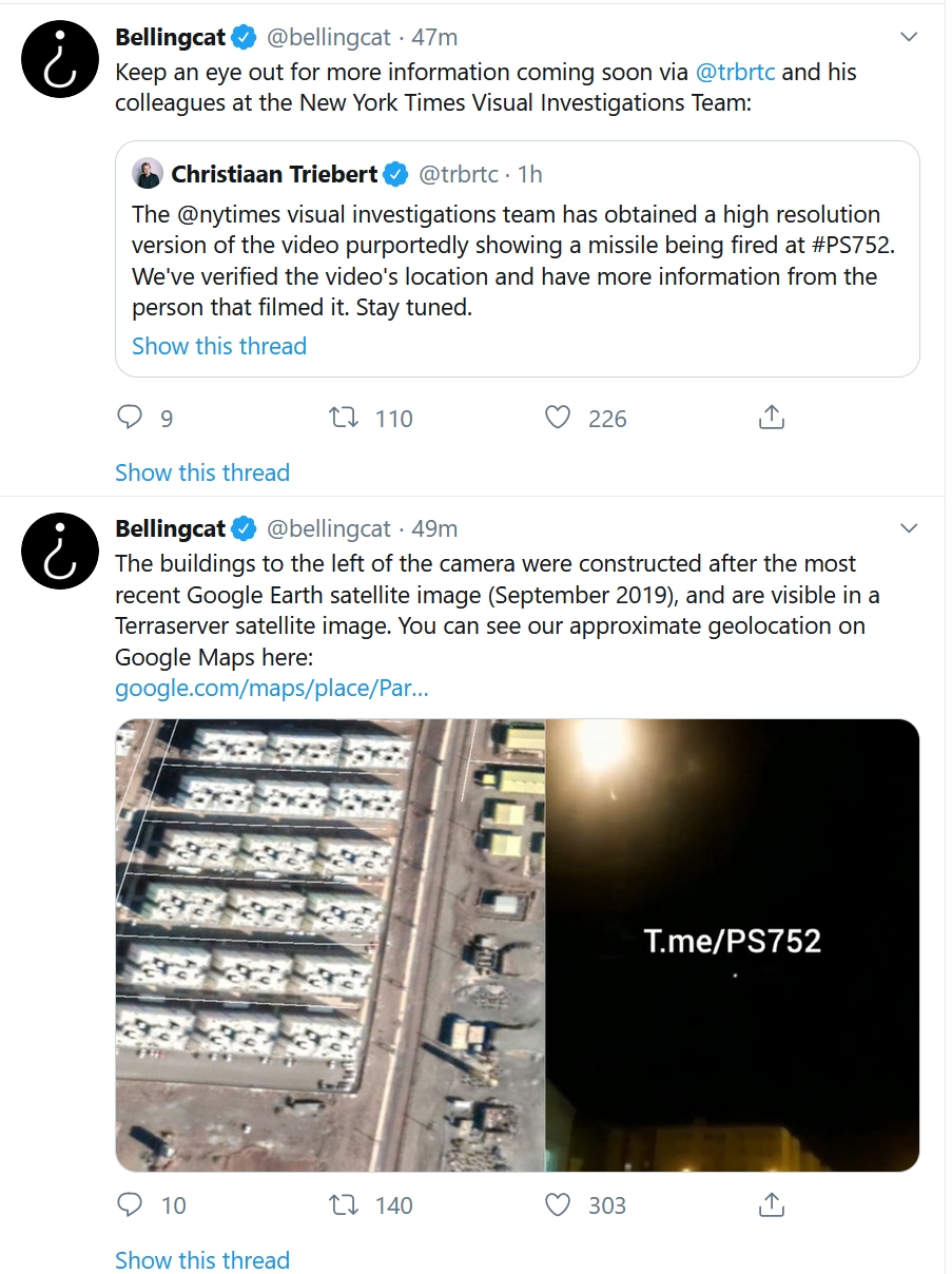 – الصحيفة قالت إنها تحققت من الفيديو الذي يظهر صاروخاً إيرانياً يصيب الطائرة دون أن يتسبب بانفجارها، في منطقة بالقرب من طهران، وهي المنطقة التي انقطع الاتصال فيها بالطائرة.