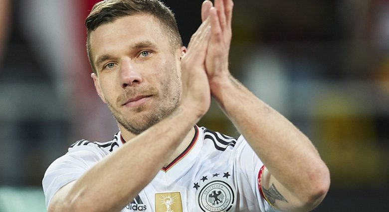 وخاض بودولسكي 130 مباراة دولية مع المنتخب الألماني (مانشافت) وتوج مع الفريق بلقب كأس العالم 2014 بالبرازيل. (DPA)