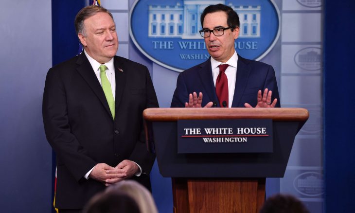 جاء ذلك في مؤتمر صحافي مشترك لكل من وزير الخارجية مايك بومبيو، والخزانة ستيفن منوتشين، للكشف عن العقوبات الإضافية ضد النظام الإيراني، بينهم قائد قوات “الباسيج”.
