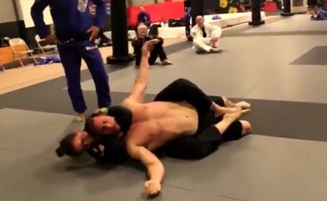 فتاة تخنق مقاتلاً ” مغروراً ” حتى فقدانه الوعي ( فيديو )