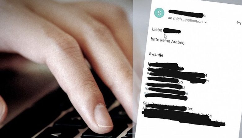 وبحسب مجلة “دير شبيغل الألمانية، فقد كانت الرسالة قصيرة من ثلاث كلمات ألمانية، “bitte keine Araber“، وترجمتها: “لطفاً، لا عرب”، واتضح فيما بعد أن رسالة البريد الإلكتروني تم إرسالها من حساب رئيسة المكتب الهندسي المختص بالعمارة إلى المستلم الخطأ، حيث كان تنوي إرسالها لزميل في المكتب.