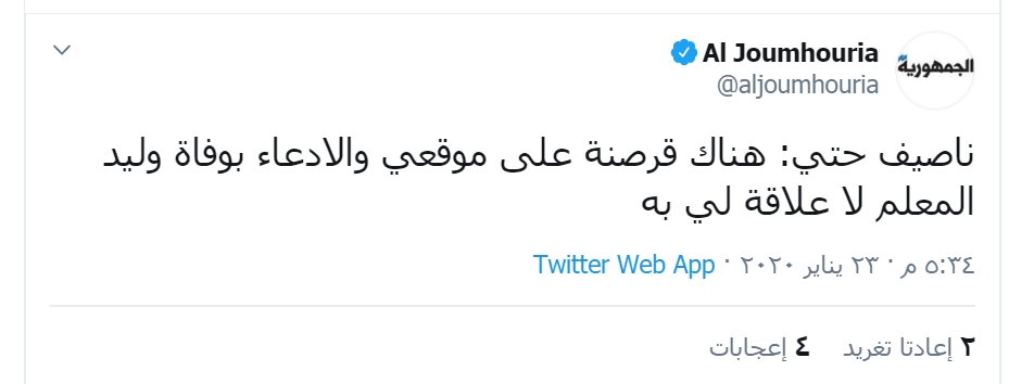 الحساب قال أيضاً إن سفارة لبنان في سوريا تحدثت عن موت وليد المعلم.