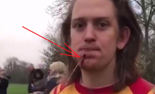 وبعد تعرض ماريوت لإصابة قوية على مستوى الوجه، وتقديم الإسعافات الأولية، تبين حدوث ثقب في أسفل شفتيه، وعندها، قرر اللاعب أن يشرب ويخرج الماء من الثقب، فيما تولى مهمة تصويره أحد زملائه.