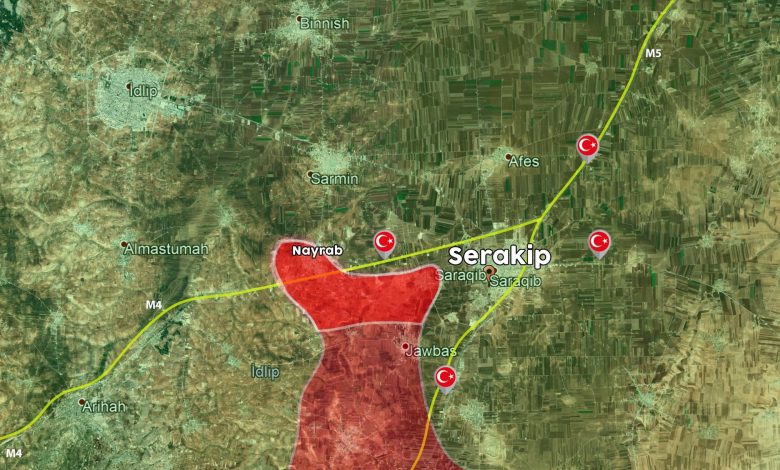 وتابع: “تمكنت قوات النظام من التقدم مجدداً في محور سراقب شرق إدلب، وفرضت سيطرتها على قرية النيرب الواقعة عند أوتستراد حلب – اللاذقية الدولي وقطعته للمرة الأولى، وبذلك تكون قوات النظام قد وصلت لأوتستراد الـ M4 وتمكنت من تخطيه والوصول إلى قرية النيرب لتصبح أيضاً على بعد نحو 8 كيلومتر عن مدينة إدلب”.