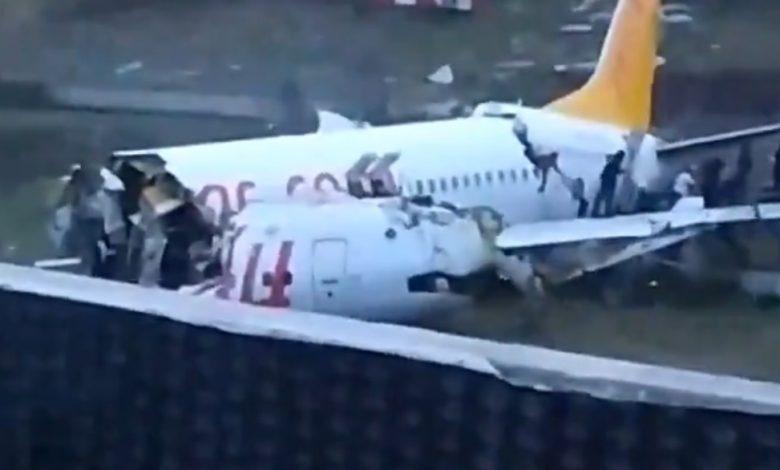 خروج طائرة ركاب في اسطنبول عن مسارها و انشطارها لنصفين ( فيديو )