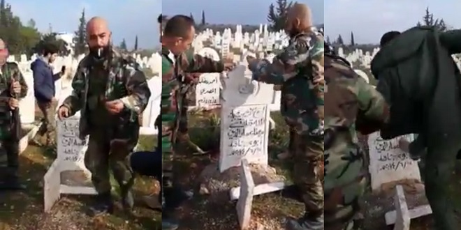 في إدلب .. عناصر ” الجيش العربي السوري ” يهددون الموتى في قبورهم ! ( فيديو )