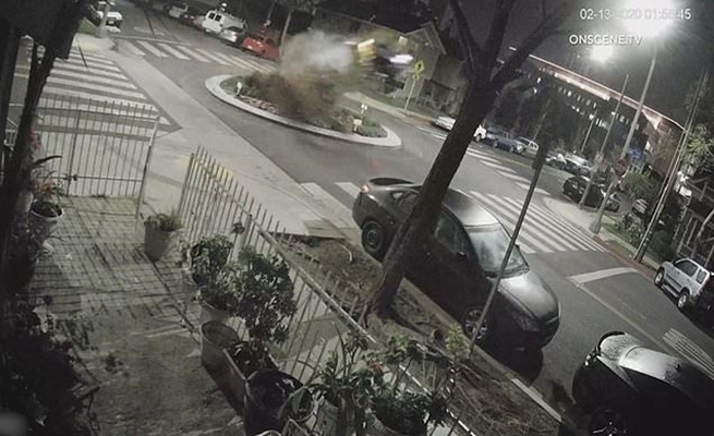 ويظهر الفيديو السيارة المسرعة، وهي من طراز “بي أم دبليو” قبل لحظات من اصطدامها بالجزيرة، ثم تحليقها في الهواء وسقوطها على الأرض، وفق ما اوردت قناة “سكاي نيوز”، وخلال الاصطدام، قذفت السيارة بصخرة كبيرة من الجزيرة اصطدمت بسيارة كانت مركونة بالقرب من المكان.