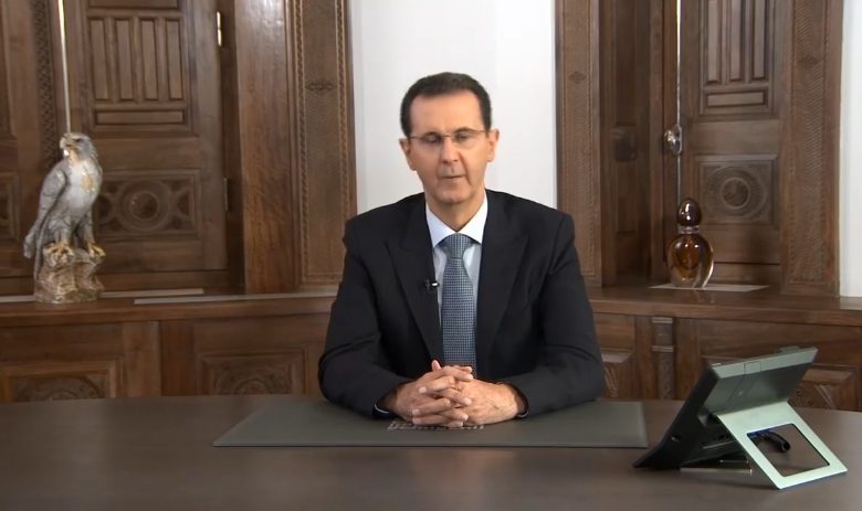 بثت وسائل إعلام موالية مقطعاً مصوراً يظهر بشار الأسد وهو يخاطب مؤيديه بشكل مباشر، ويعلن عن “انتصاره”.