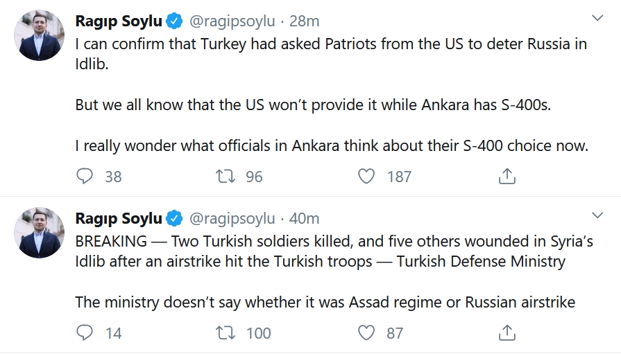 تركيا تطلب الـ ” باتريوت ” من أمريكا لمواجهة روسيا في إدلب .. صحفي تركي يكشف الجواب و يتحدث عن مقتل الجنود الأتراك