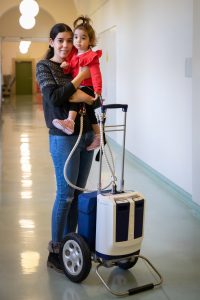 لكن شركة “برلين هارت”، في العاصمة الألمانية، طورت مُشغِّلاً جديداً لجهاز القلب الاصطناعي، تستخدمه الطفلة إيلينا الآن، لأول مرة، وهو عبارة عن عربة صغيرة، ويمكن أيضًا حمل المشغل على الدرج بواسطة شخص مرافق، ويبلغ وزن المشغل 15 كيلوغراماً.