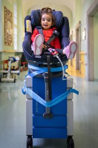 ويمكن ربط مقعد الطفل بالجهاز، بحيث يمكن دفع الأطفال على الأقل، على كرسي متحرك، حيث يوجد القلب الاصطناعي على عجلات.