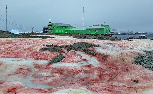 تشكلت مجموعة من الثلوج الحمراء على محطة “فيرنادسكي” الأكاديمية القطبية الأوكرانية في القطب الجنوبي، وفقا لصفحة وزارة التعليم والعلوم الأوكرانية على موقع “فيسبوك”.