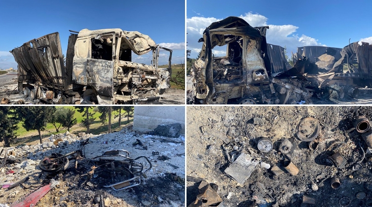 *الصورة: آليات عسكرية للنظام دمرتها الطائرات التركية المسيرة