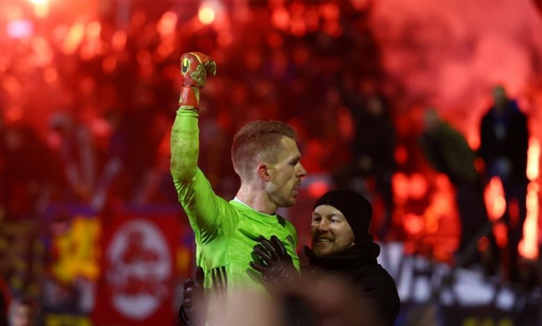وساهم الحارس دانيال باتز (29 عاماً) في تعادل فريقه في الوقتين الأصلي والإضافي للمباراة بالتعادل (1 – 1)، بتصديه لضربة جزاء في الدقيقة 83، ومن ثم تصدى لأربع ركلات ترجيحية، ليقوده فريقه إلى الفوز (7-6)، وبلوغ المربع الذهبي لكأس ألمانيا. (RT)