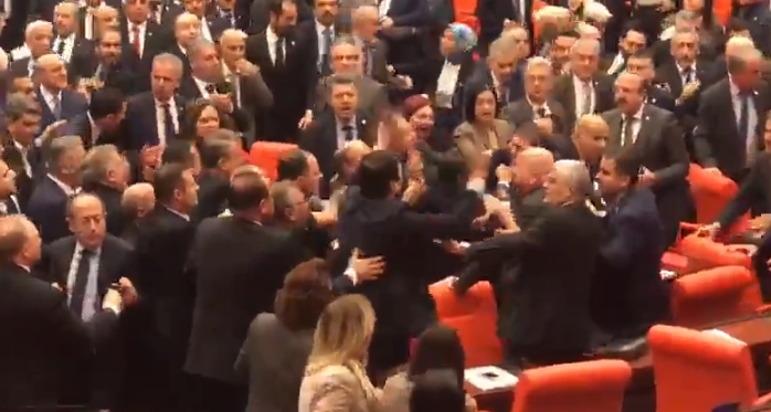 وقعت مشاجرة بين أعضاء في البرلمان التركي من حزب الشعب الجمهوري المعارض، وحزب العدالة والتنمية الحاكم، خلال جلسة حول الأوضاع في إدلب السورية.