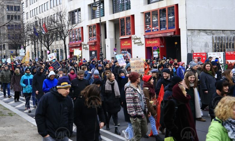 وتجمع المتظاهرون أمام وزارة الداخلية الألمانية، وساروا عبر الشوارع الرئيسية ليصلوا أمام مبنى رئاسة الوزراء؛ تلبية لمبادرة من قبل ناشطين، حسب مراسل الأناضول.
