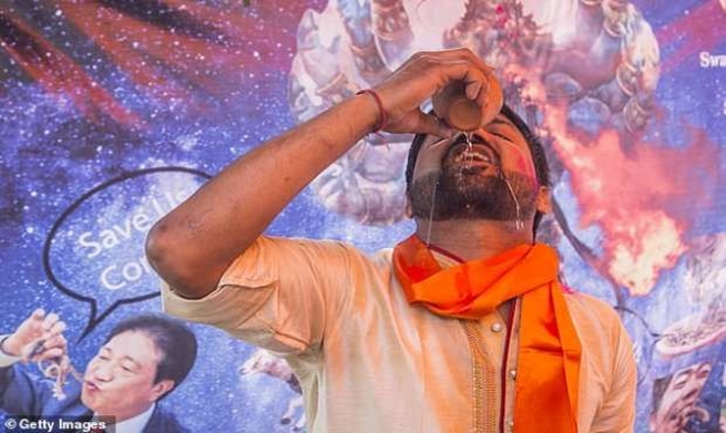 استضافت جماعة هندوسية حفلا لاحتساء بول الأبقار، السبت، لاعتقادها أنه يقي من فيروس كورونا، لأن كثيرين من الهندوس يعتبرون الأبقار مقدسة ويؤمن بعضهم أن لبولها خصائص علاجية.