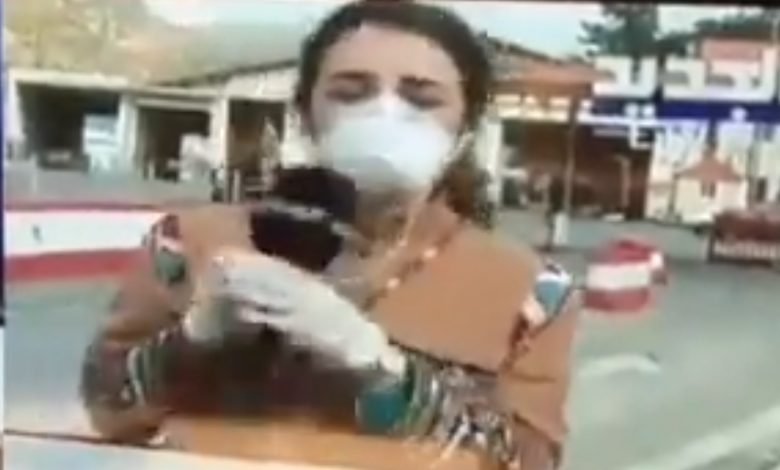 انتشار واسع لفيديو يظهر سقوط مراسلة قناة خلال تغطيتها لمستجدات أزمة فيروس كورونا على الحدود اللبنانية السورية ( فيديو )